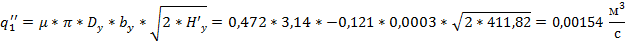 Выполним расчет утечек жидкости q1 в центробежном насосе. Принимаем однощелевое уплотнение с длиной l у =30 мм, диаметром Dy = D0 + 5 - 116+5 - 121 мм, с радиальным зазором by =0,2+ (D0 -100)-0,001= 0,2+ (116-100)-0,001 = 0,216 мм (принимаем в =0,3 мм); коэффициент трения выбираем в первом приближении λ’= 0,04.