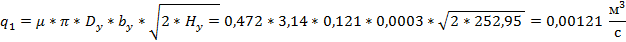 Расчетаем коэффициент расхода μ ’ в первом приближении