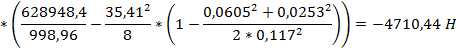 =1/1,2*((100000-1703)/ 998,957-9,81*(-3)-5)=108,354Дж/кг