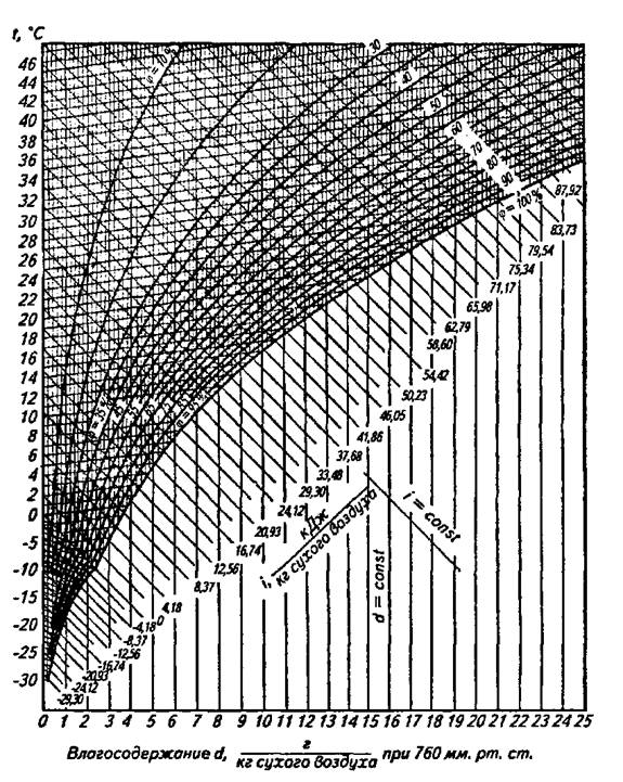 * ― по диаграмме i – d (энтальпия ― влагосодержание) [ Приложение №3 ]