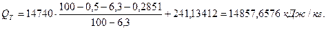 2.3.5 Вычисление действительного суммарного объёма продуктов сгорания: