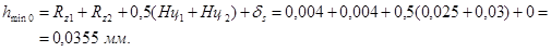 Минимальную толщину масляного слоя в подшипнике (рисунок 2) определяем [1] по формуле
