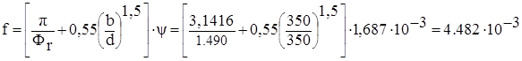 Переходим к определению коэффициента трения в подшипнике. Он вычисляется по формуле