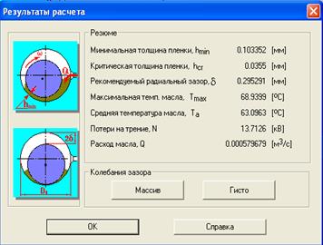 Из полученных результатов видно, что в нашем случае жидкостной режим трения в подшипнике обеспечивается,