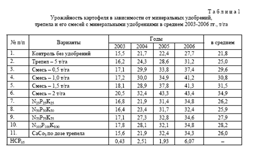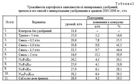 Реферат: Урожайность картофеля в зависимости от минеральных удобрений, трепела и его смесей с минеральными удобрениями