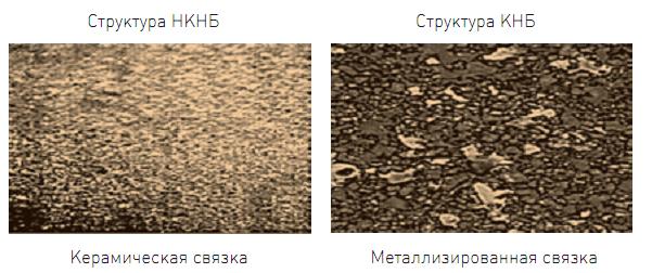 Крупносерийное производство режущего инструмента из нанопорошка кубического нитрида бора создано на базе ООО «Микробор Технолоджи» (Москва). На этом же производстве синтезируют нанопорошок КНБ-сверхтвердого материала, уступающего по твердости только алмазу. Режущему инструменту, изготовленному из него, поддаются все промышленно значимые материалы: чугуны, стали, железные и титановые сплавы, угле-, и стеклопластики. Новый инструмент работает с высокой производительностью, снижая затраты на обработку деталей до 60%. Отечественное производство инструмента из КНБ созданное в рамках проекта ГК «Роснанотех», является первым в мире. Его продукция предназначена для черновой и финишной обработки деталей в тяжелом машиностроении, автомобилестроении, добывающей промышленности, строительстве и будет поставляться на внутренний и внешний рынки. Что такое композит на основе КНБ. На рабочие свойства композита существенно влияет размер зерна КНБ и его процентное содержание, а также свойства материала связки.
