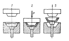 Рис.. Схема процесса 1-загрузка пресс-материала; 2 - прессование; 3 — извлечение изделия