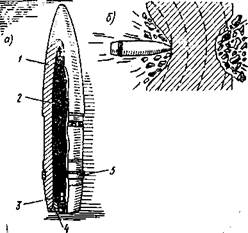 Рис. Бетонобойный снаряд (а) и его действие по бетону (б)