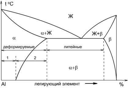 Рис. 1. Диаграмма состояний “алюминий – легирующий элемент”:
