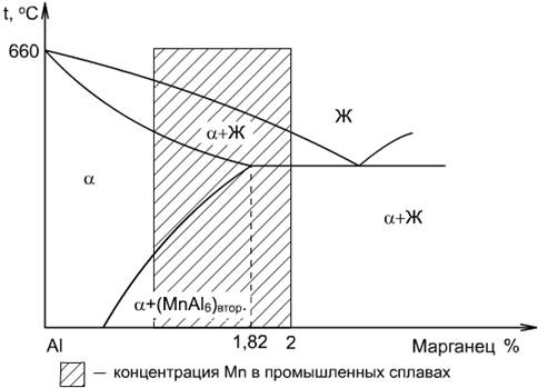 Рис. 2. Диаграмма состояния “алюминий – марганец”:
