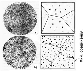 (справа – схематическое изображение):а) доэвтектический, б) эвтектический