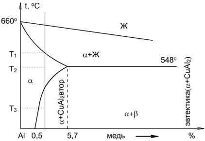 Рис. 5. Фрагмент диаграммы состояния “алюминий – медь”: