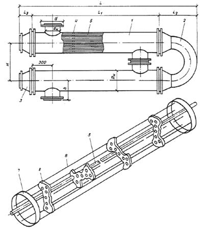 5 - трубки; 6 - перегородка опорная; 7 - кольцо; 8 - пруток;