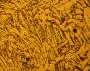 Участок перегрева (рис.3) находится в интервале максимальных температур и ограничивается: со стороны шва – температурой участка неполного расплавления ( 1450°С, идет интенсивный рост зерна аустенита); со стороны основного металла – температурой плавления основного металла (1100 – 1200°С). На этом участке металл претерпевает полиморфное превращение из Fed(ОЦК-решетка) в Feg(ГЦК-решетка). Здесь наблюдается перегрев и, следовательно, рост аустенитного зерна. В процессе остывания образуется крупнозернистая видманштеттова структура. Формирующаяся неблагоприятная структура характеризуется резким снижением пластичности и снижением сопротивления хрупкому разрушению,что оказывает решающее влияние на качество сварного соединения.