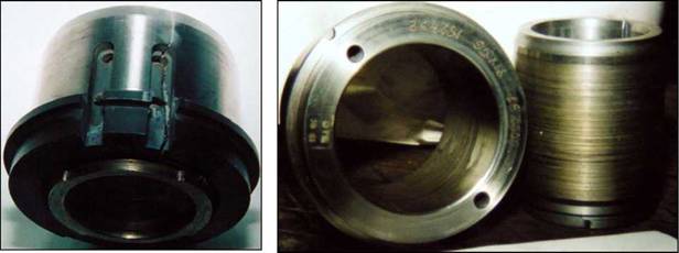 Примерно через пять-шесть тысяч часов работы пусковой подшипник приходится менять, так как поверхность подшипниковой опоры становится неработоспособной из-за задеваний при пусках и остановах. Подшипник представляет собой бронзовую втулку с лазерным упрочнением на валу и корпус подшипниковой опоры, выполненный из высоколегированной стали. На рис. 4 показаны детали подшипника после разборки.