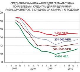 Рис. 2. Средняя предлагаемая ставка по кредитам для групп предприятий (по материалам источника [5])