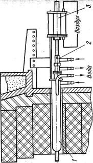 1 – фурма; 2 – шомпол; 3 - пневмоцилиндр