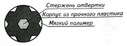 Рис. 4. Ручка отвертки со сквозным стержнем Рис. 5. Поперечное сечение ручки отвертки