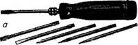 Сборные отвертки. Отвертки со сменными стержнями(рис. 7), которые могут быть круглого или шестигранного сечения. На одном конце стержней сформирован рабочий профиль, на другом - лапки (у круглых стержней), предотвращающие его поворот внутри ручки.