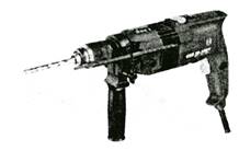Дрели, ударные дрели.Инструмент служит для сверления отверстий в металле, кирпиче и бетоне диаметром до 13 мм (под крепежные болты оборудования и хомутов); для сверления в бетоне используют победитовые или алмазные сверла. Желательно иметь дрель с самозажимным патроном и реверсом (рис. 29). В комплект к дрели дополнительно надо включить набор сверл по металлу диаметром 4-12 мм, набор сверл и буров (рабочая длина 250 мм) по бетону диаметром 6-13 мм. Потребляемая мощность 600-800 Вт, 220 В.
