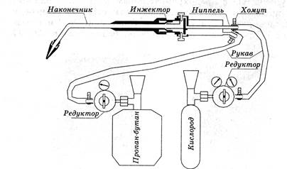 Горелки используют инжекторные малой мощности (10-60 дм3 /ч), обычно марок Г2-06, ГЗУ-3, ГЗУ-4, «Звезда», «Урал» с наконечниками, имеющими нагреватели и подогревающие камеры, и без них (от № 0 до № 3).