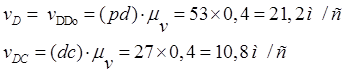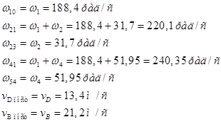 Величини швидкостей визначимо, множачи довжини векторів на плані швидкостей на масштабний коефіцієнт ![]()