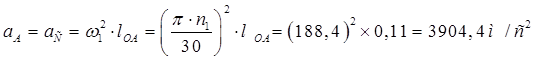 перпендикулярний кривошипу ОА й спрямований убік його обертання.