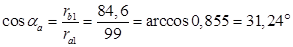 де r1 - радіус кривизни евоволенти першого колеса в крапці зачеплення;