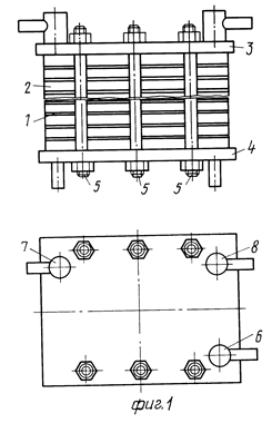 Мембранный аппарат предназначен для микро-, ультрафильтрации и концентрирования жидких сред и может использоваться в медико-биологической, химико-фармацевтической и пищевой промышленности. Содержит собранные в пакет полупроницаемые мембраны и дренажные пластины с прорезями. Эти каналы соединены со сквозными отверстиями, в которых установлены уплотняющие кольца с отверстиями на боковой поверхности для перетока жидкости. Дренажные пластины изготовлены из металла, предел текучести которого меньше предела текучести материала мембран. Кольца для перетока жидкости изготовлены из материала, предел текучести которого больше, чем предел текучести материала дренажной пластины, а торцы колец покрыты слоем материала, из которого изготовлена дренажная пластина. Такая конструкция обеспечивает герметичность уплотнения тонких пленочных мембран, например, трековых. 3 ил.