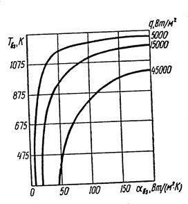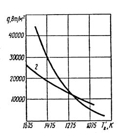, то при тому ж коефіцієнті тепловіддачі припустиме нагрівання повітря знижується до 975 К при – 15000 Вт/м2