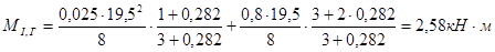 Горизонтальный изгибающий момент в узлах сопряжения балок определяем по формулам;