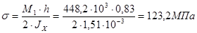 - напряжение в балке от её общего изгиба в продольном направлении.