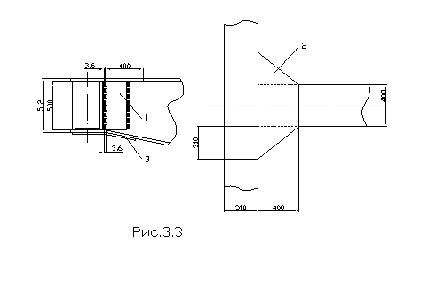 Конструкция соединения балок показана на рис.3.3. Такое соединение применяется для четырехколесных кранов. Накладки 1,2,3 являются компенсаторами нормальных допусков изготовления пролетных балок, кроме того накладки 2,3 обеспечивают жесткость стыка в горизонтальной плоскости.