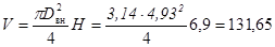 Fвн = πD вн Н1 + πDвн 2 /4=3,14·4,93·6,9+3,14·: 4,932 /4=125,9 м2