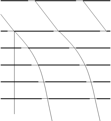 Упростить расчет помогает график Адамецкого и его виды. На нем по горизонтальной оси откладывается время в секундах, по вертикальной – номер клети стана. Продолжительность прокатки в рассматриваемом проходе на графике отмечается жирной горизонтальной линией на оси, соответствующей прокатной клети. Свободные участки между двумя линиями представляют паузы между соседними проходами. Передача полосы из одной клети в другую изображается наклонной линией, а ее проекция на горизонтальную ось соответствует паузам на передачу. По графику Адамецкого можно наглядно проследить за последовательностью выполнения технологического процесса и видеть элементы машинного времени прокатки. Следовательно, появляется возможность анализировать загруженность рабочих клетей, выявлять их пропускную способность и наметить возможное перераспределение обжатий прокатываемой полосы между клетями или изменение скоростных условий по клетям с целью более равномерной их загрузки в соответствии с требованиями максимальной производительности стана. В приложении на рис. 2 представлен график Адамецкого непрерывого заготовочного стана, состоящего из двух непрерывных групп по шесть клетей в каждой с последовательным чередованием вертикальных и горизонтальных клетей.
