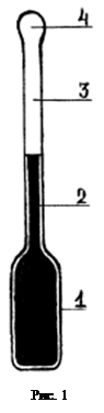 Жидкостный термометр состоит из стеклянных баллона 1, капиллярной трубки 3 и запасного резервуара 4 (рис. 1).Термометрическое вещество 2 заполняет баллон и частично капиллярную трубку. Свободное пространство в капиллярной трубке и в запасном резервуаре заполняется инертным газом или может находиться под вакуумом. Запасной резервуар или выступающая за верхним делением шкалы часть капиллярной трубки служит для предохранения термометра о порчи при чрезмерном перегреве.