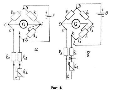 Наибольшую чувствительность обеспечивает попарно равноплечий мост у которого R2 =R3 и R1 »Rт , причем сопротивления R2 и R3 задаются в пределах 100-400 Ом. Наиболее часто принимают значение 300 Ом.