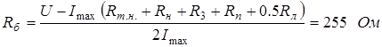 Максимальное значение тока Imax , протекающего через ТС, принимается равным 0.007 А. Величину балластного сопротивления рассчитывают по формуле:
