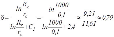 и коэффициент совершенства d гидродинамически несовершенной по степени вскрытия скважины радиусом rс = 0,1 м, находящейся в пласте с круговым контуром питания. Мощность пласта h = 16 м, мощность вскрытой части пласт b = 9,6 м, радиус контура питания Rк = 1 км.