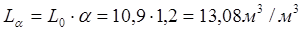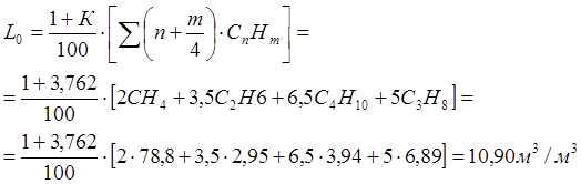 Расход воздуха на горение: - теоретический L0