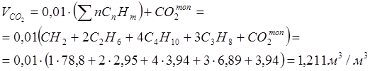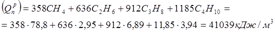 СО2 = 2,5%; СН4 = 84,0%; С2Н6 = 4,0%; С3Н8 = 3,0%; С4Н10 = 3,5%;
