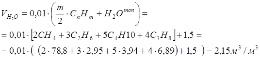 Действительный выход влажных продуктов горения м3/м3
