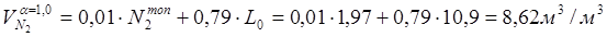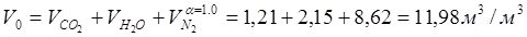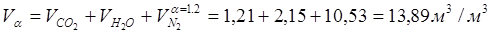Определим количество продуктов горения при α = 1,0