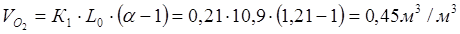3. Расход продуктов горения: - теоретический V0
