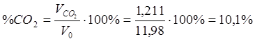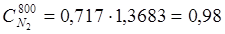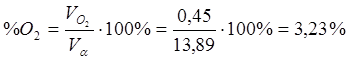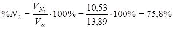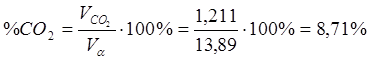 Найдем процентный состав продуктов сгорания при α = 1,2;