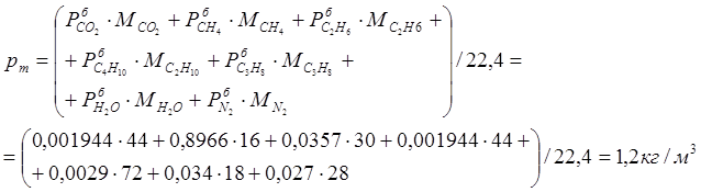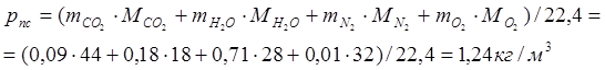 Плотность продуктов сгорания: