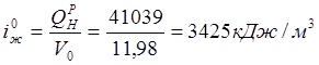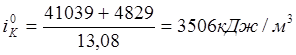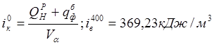 Начальная энтальпия продуктов сгорания для расчета температур жаропроизводительной и калориметрической iж0; ik0^