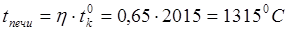 Выберем температурный график процесса нагрева. Температуру уходящих из печи газов примем равной 8000С, а температуру в томильной зоне на 500С выше, чем температуру нагрева металла, то есть 12300С. На основании выше изложенного действительная температура горения 1315 0С.