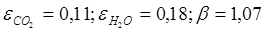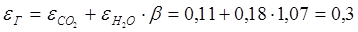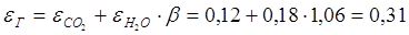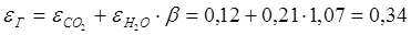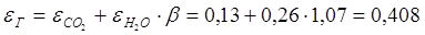 Находим степень черноты газов εГ: