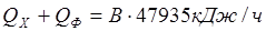 Низшую теплоту сгорания топлива, Qнр.